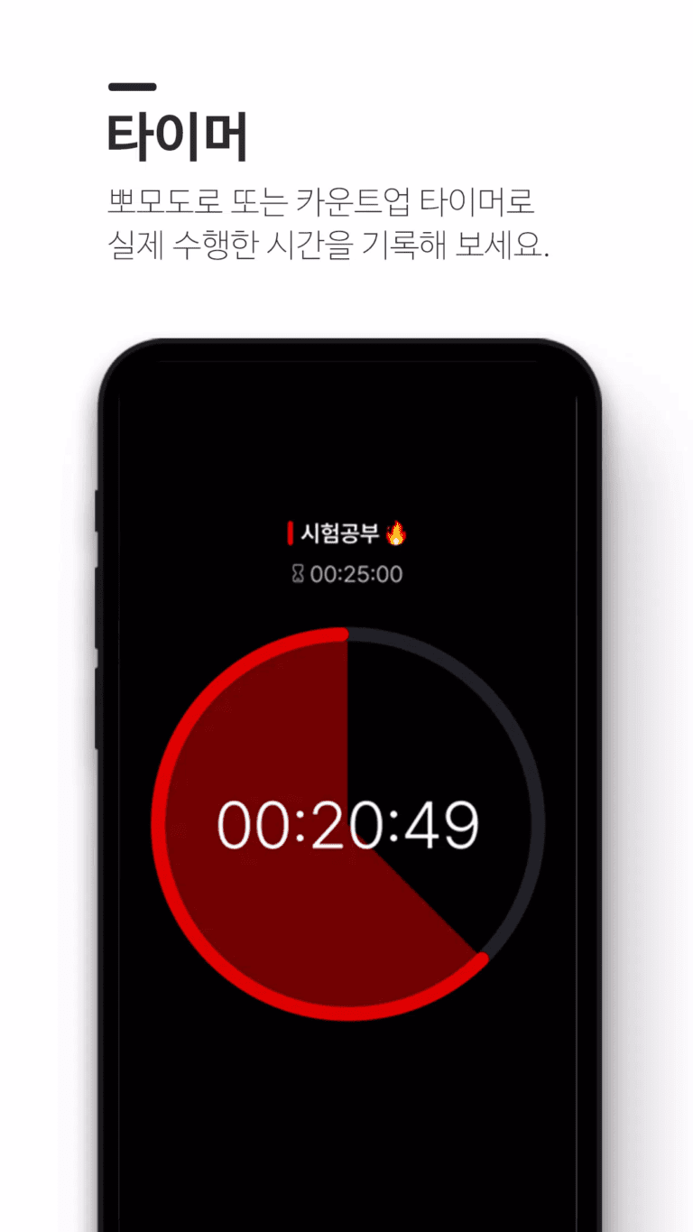 수 많은 고민 끝에, 저희는 시간관리의 생산성을 높여줄 수 있는 필수적인 기능만을 포함한 도트타이머 앱을 개발했습니다.