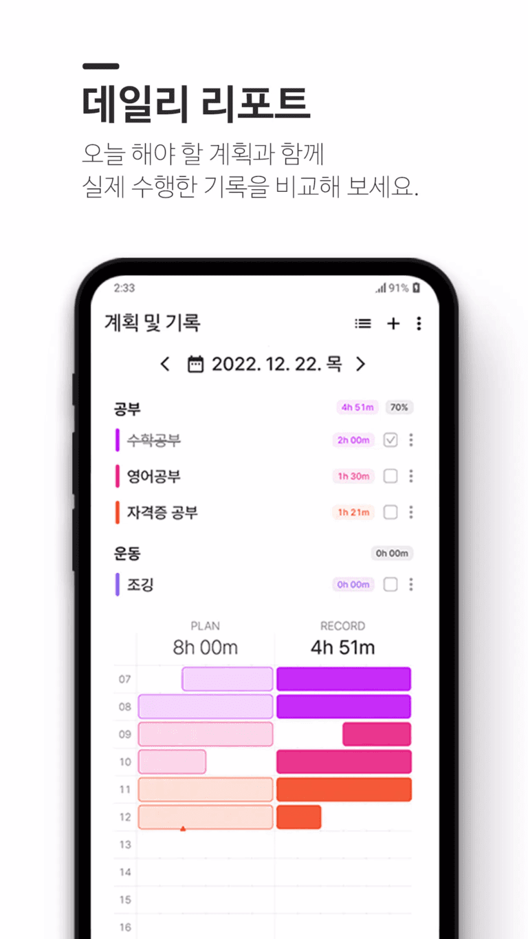 업무의 중요도에 따라 우선순위를 결정하고, 자동화된 기록, 통계 시스템과 함께 달라진 습관을 발견해 보세요!